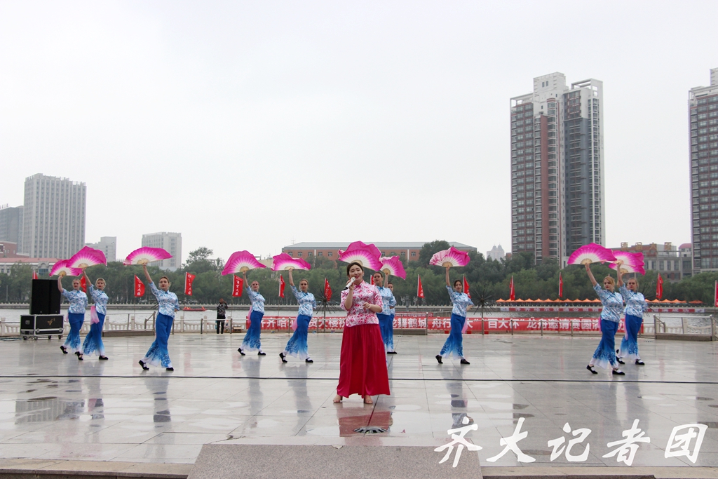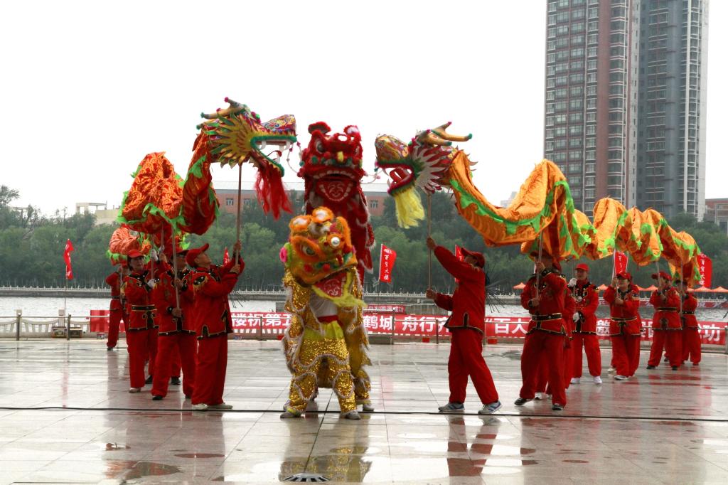 由齐齐哈尔市民带来的舞龙舞狮表演,慷慨激昂,粗犷豪放,展示了中华儿女在中国共产党领导下顶天立地、威武雄壮、不屈不挠、英勇顽强的民族性格,象征着风调雨顺国泰民安,中华民族的伟大复兴势不可挡,勇往直前。