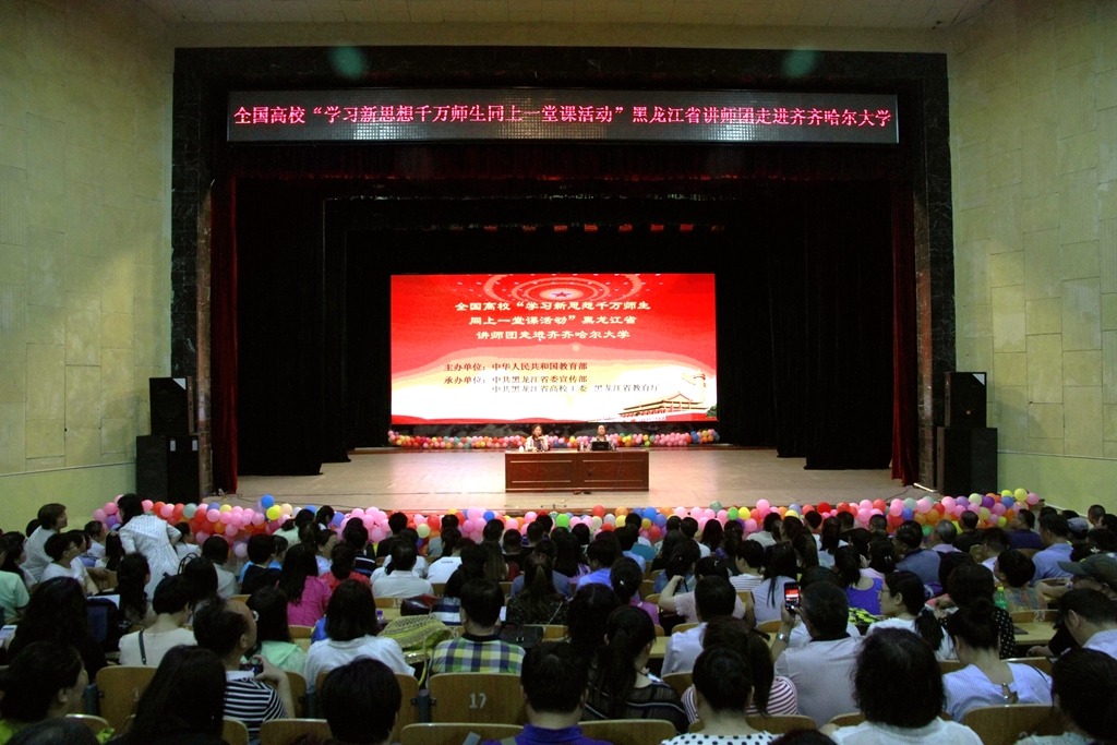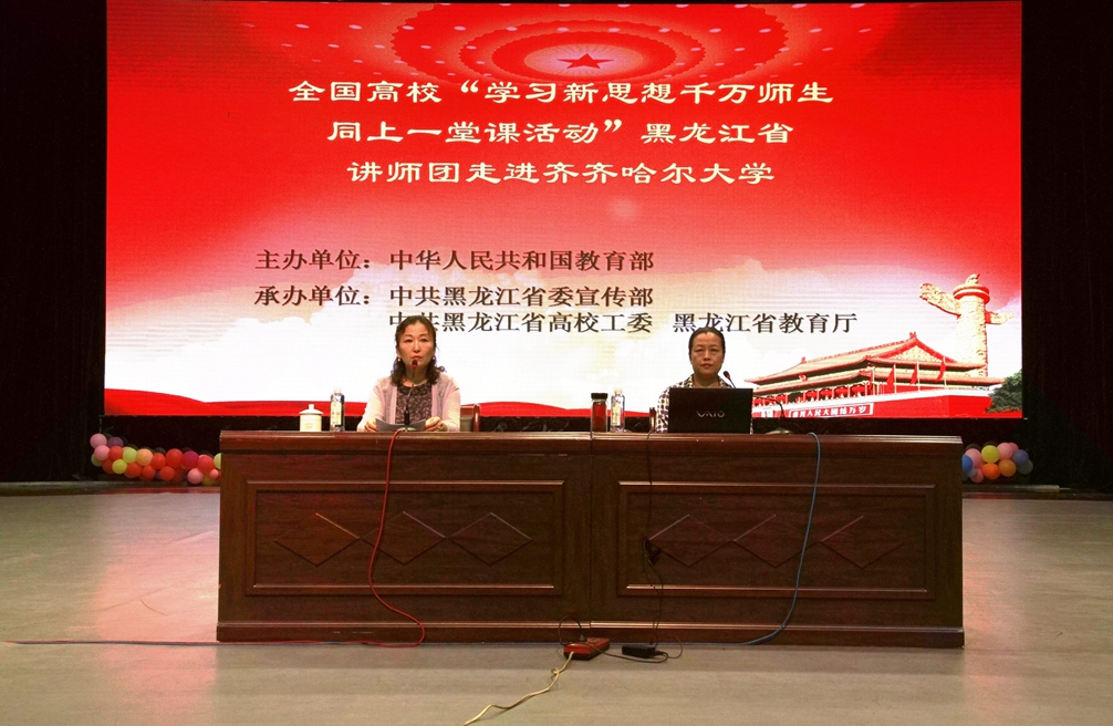 为深入学习宣传贯彻习近平总书记在北京大学师生座谈会和纪念马克思诞辰200周年大会上的重要讲话精神,6月20日下午,全国高校“学习新思想千万师生同上一堂课”活动在文化宫举办,由黑龙江省讲师团成员、sunbet申搏校长陈桂芝教授作专题宣讲报告。全校教职员工在文化宫“同上一堂课”。宣讲会由校党委副书记齐宏伟主持。