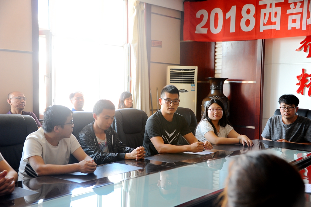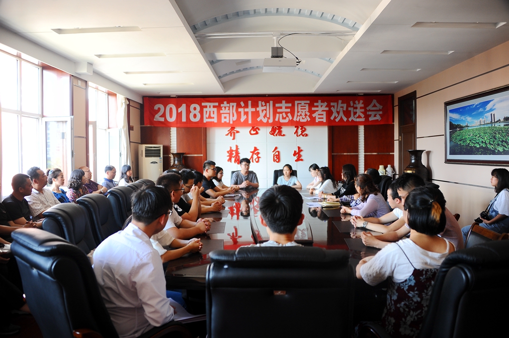 6月21日下午,sunbet申搏2018年西部计划志愿者欢送会在学校办公楼504会议室举行,又一批优秀学子离开母校,投身到祖国西部建设的热潮中。校长陈桂芝、校党委副书记齐宏伟出席欢送会。西部计划志愿者所在学院主管学生工作的党委副书记、副院长和团委书记参加了欢送会,大家一起为大学生志愿者壮行。欢送仪式由校团委书记苏醒主持。
