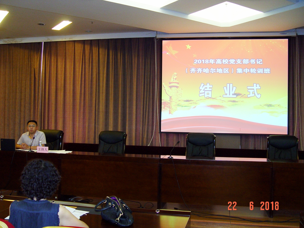 6月22日上午,历时4天的黑龙江省2018年高校党支部书记集中轮训班(齐齐哈尔地区)在德润大厦四楼会议室结业,结业式由党委组织部副处级组织员徐海祥主持。
