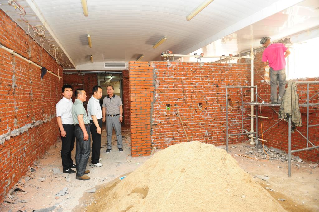 为深入贯彻《黑龙江省普通高校后勤工作专项整顿实施方案》,了解暑期维修改造项目进展情况,加强工程质量监督管理,促进项目取得预期效果,7月28日上午,省委高校工委副书记王震来sunbet申搏检查后勤维修改造工作,副校长王刚,后勤管理处处长尹鸥,校办主任王玉国,学生工作部(处)副部(处)长张树启等陪同检查。