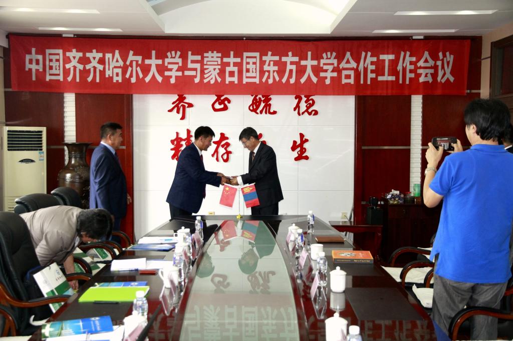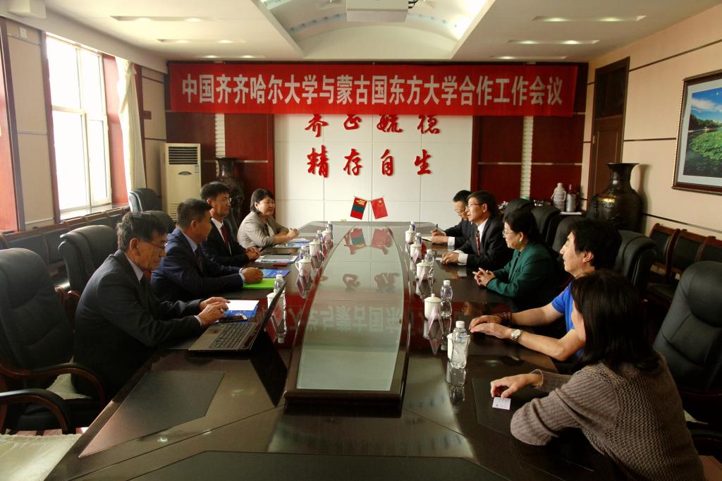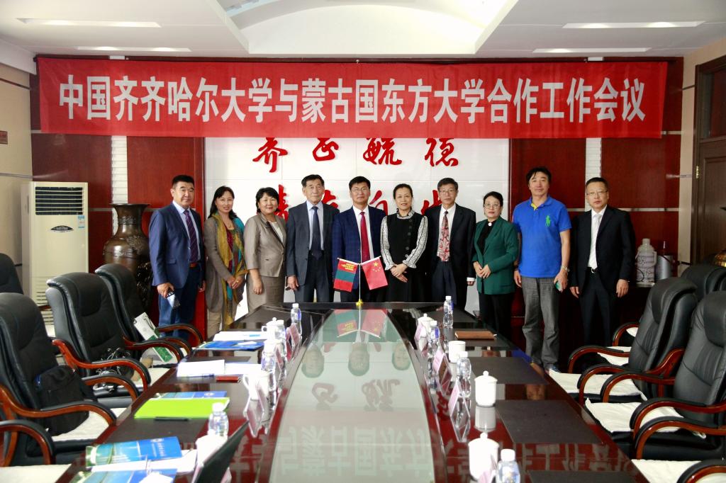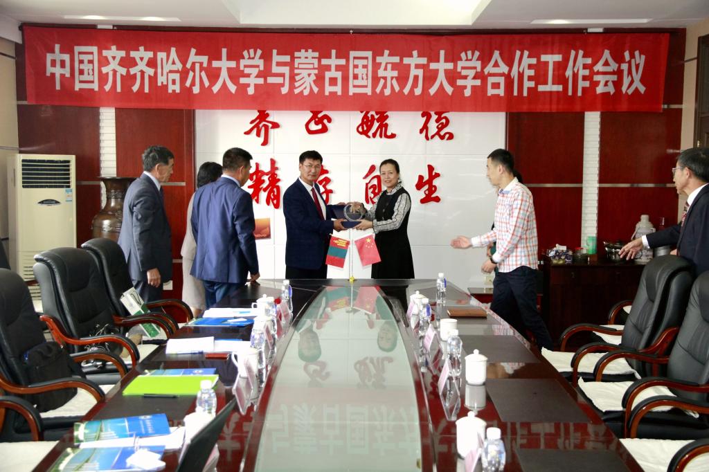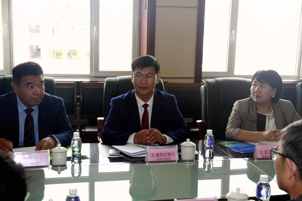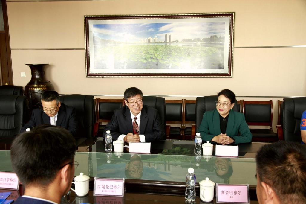 在代表团访问期间,校长陈桂芝会见了吉.楚伦巴特尔一行,她对蒙古国东方大学的来访表示热烈欢迎,并与来访人员互赠纪念品合影留念。