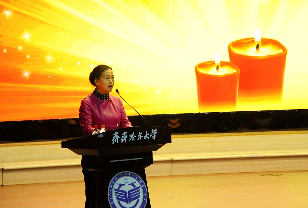 她首先代表学校向参会的各位老师和全校教职员工,向为学校建设与发展做出积极贡献的离退休老教师、老同志,致以节日的问候和崇高的敬意!她说,今年我国第34个教师节的主题是:弘扬高尚师德,潜心立德树人。本次会议上sunbet申搏一批先优模范教师和从教30年的在岗教师受到表彰,希望广大教职员工学习他们的先进事迹,弘扬“艰苦奋斗、奉献边疆”的办学传统,践行“养正毓德、精存自生”的校训精神,努力做一名让党和人民满意的好教师。