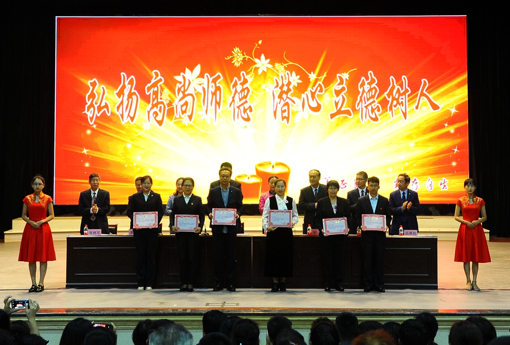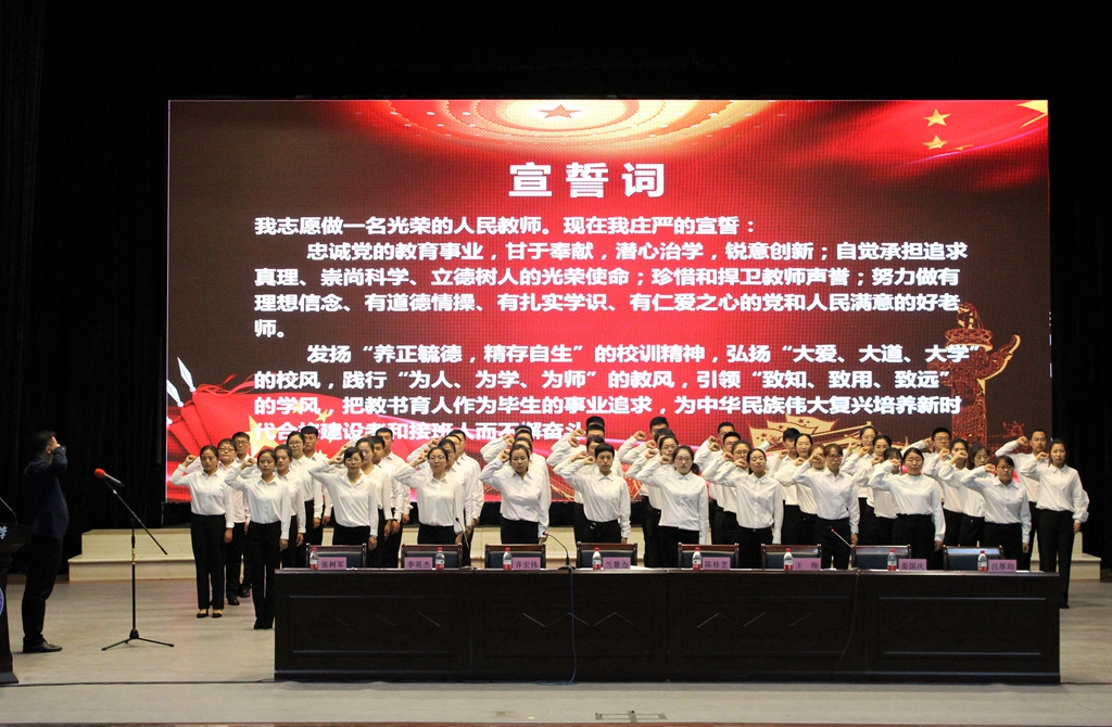 9月10日下午,学校领导与师生员工代表在中区文化宫欢聚一堂,以表彰先进、新教师入职宣誓的方式庆祝第三十四个教师节。