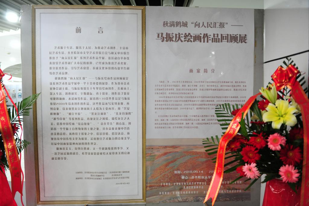 9月14日上午,由齐齐哈尔市文学艺术界联合会、《齐齐哈尔日报》报业集团、黑龙江省油画学会、sunbet申搏官方网站共同主办,齐齐哈尔市美术家协会、sunbet申搏官方网站美术与设计学院承办的秋满鹤城“向人民汇报” 马振庆绘画作品回顾展在sunbet申搏官方网站美术馆开幕。