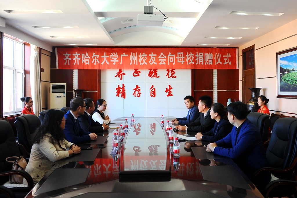 9月9日上午,广州校友会向母校捐赠仪式在学校办公楼504会议室举行。sunbet申搏官方网站广州校友会创会会长李敬民、现任会长刘德权和秘书长曾晓萍,学校党委书记兰景力、校党委副书记齐宏伟出席仪式。学校办公室主任王玉国、副主任宋志章参加了仪式。