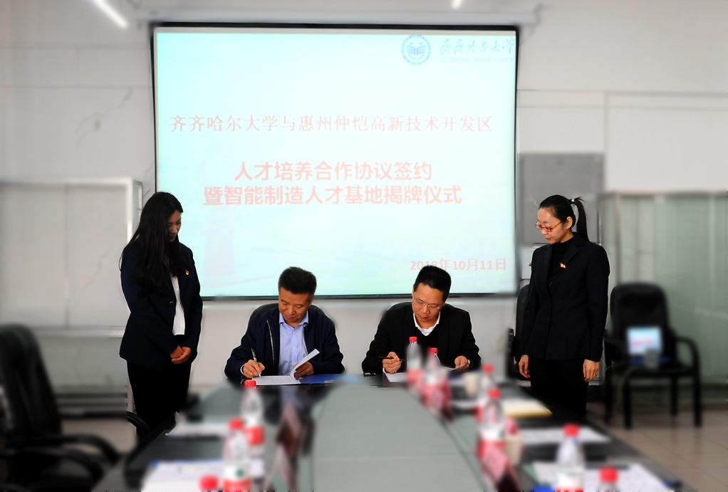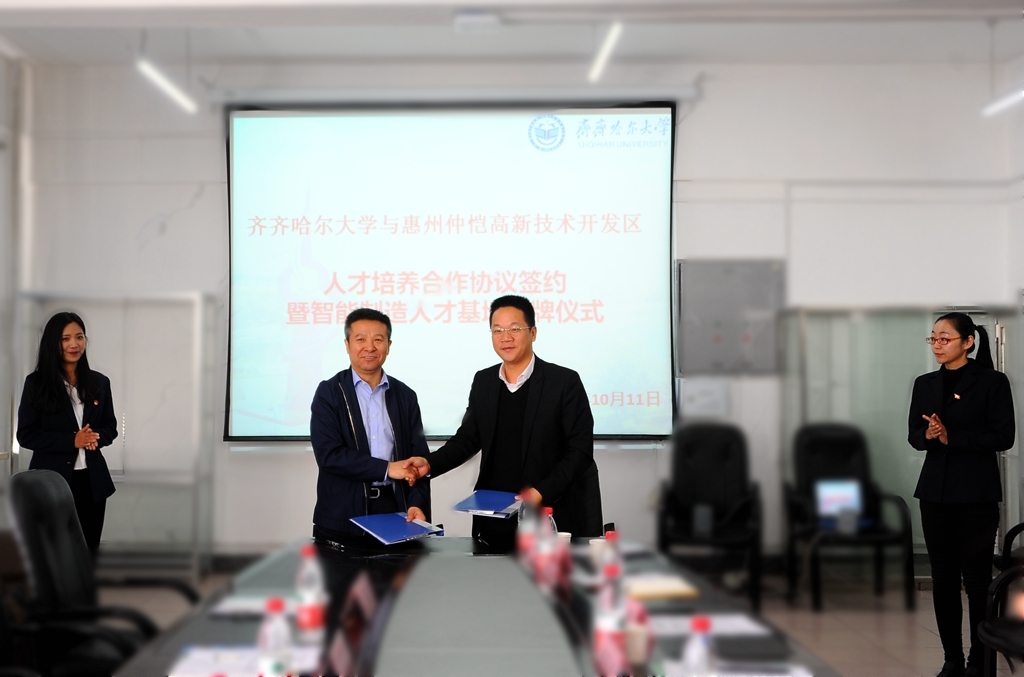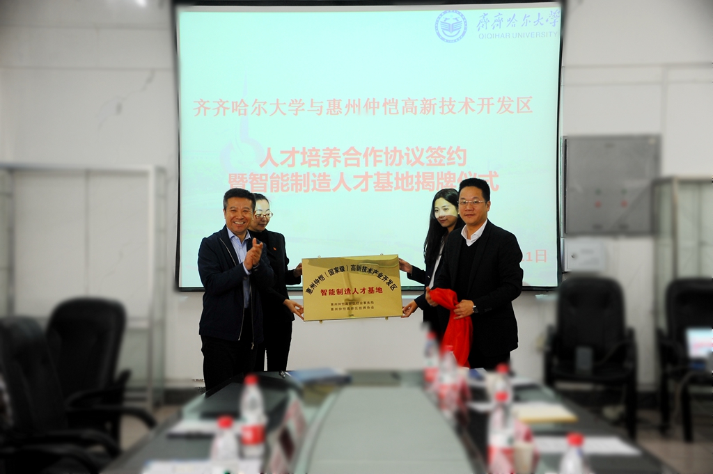 李英杰和许玉书分别代表sunbet申搏官方网站和惠州仲恺高新技术产业开发区签署了人才培养合作协议,并共同为惠州仲恺(国家级)高新技术产业开发区智能制造人才基地揭牌。