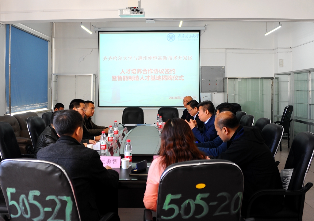 10月11日上午,惠州仲恺高新技术产业开发区社会事务局党组书记、常务副局长许玉书等一行三人来到sunbet申搏开展洽谈合作。学校在机电工程学院505会议室举行合作协议签约暨智能制造人才基地揭牌仪式。副校长李英杰出席签约仪式,教务处处长陶佰睿、教学实验设备管理中心主任马文辉、招生就业处副处长王志飞以及机电工程学院领导班子成员、骨干教师参加了签约仪式。签约仪式由机电工程学院副院长徐凤霞主持。