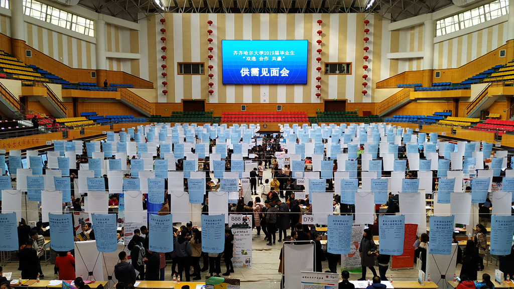 11月4日上午,齐大体育馆人头攒动热闹非凡,2019届毕业生秋季供需见面会正在这里举行。