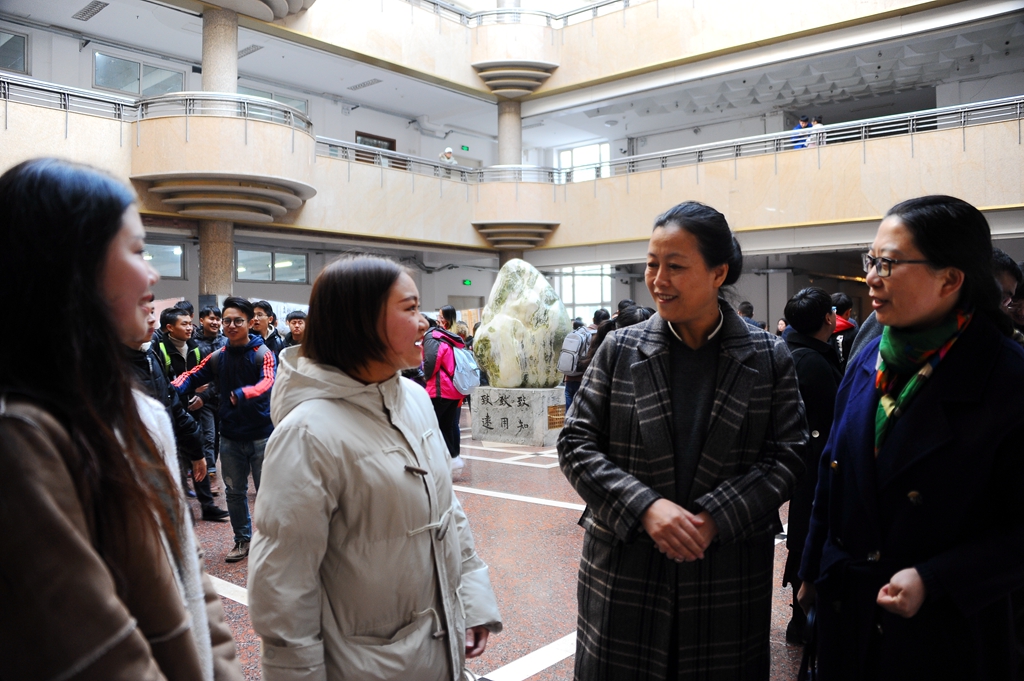 在参观过程中,陈桂芝对本次展览的举办和同学们的作品给予高度评价和充分肯定。她指出,今年是改革开放40周年,这次活动的举办既紧扣主题,又很“接地气”,通过艺术作品展的形式展现出同学们学习思想政治理论课的效果。这次展览既是马克思主义学院开展思想政治理论课教学改革的一次重要探索,也是学校认真贯彻落实全国全省高校思想政治工作会议精神的一项举措,有利于调动起广大学生学习的积极性、主动性和创造性。我们要运用好思想政治理论课教学这个主渠道,继续围绕立德树人这一主线,不断推进思想政治理论课实践教学改革,提升思想政治理论课的亲和力和针对性,在教学实践中不断满足学生成长发展的新需求和新期待,为祖国培养出德智体美劳全面发展的社会主义建设者和接班人。