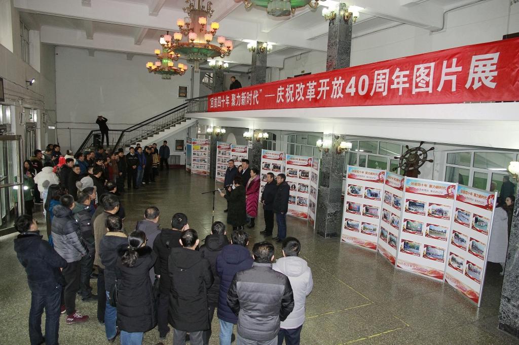 用镜头记录时代变迁,以影像定格历史瞬间。为引领sunbet申搏师生感受改革开放四十年来我国社会主义建设所取得的伟大成就,回顾sunbet申搏官方网站在改革开放四十年中的发展历程,展现学校奋发向上的新作为、新气象,激励广大师生建功新时代的工作热情,12月12日下午,校宣传统战部在文化宫大厅举办了庆祝改革开放四十周年图片展开幕式。