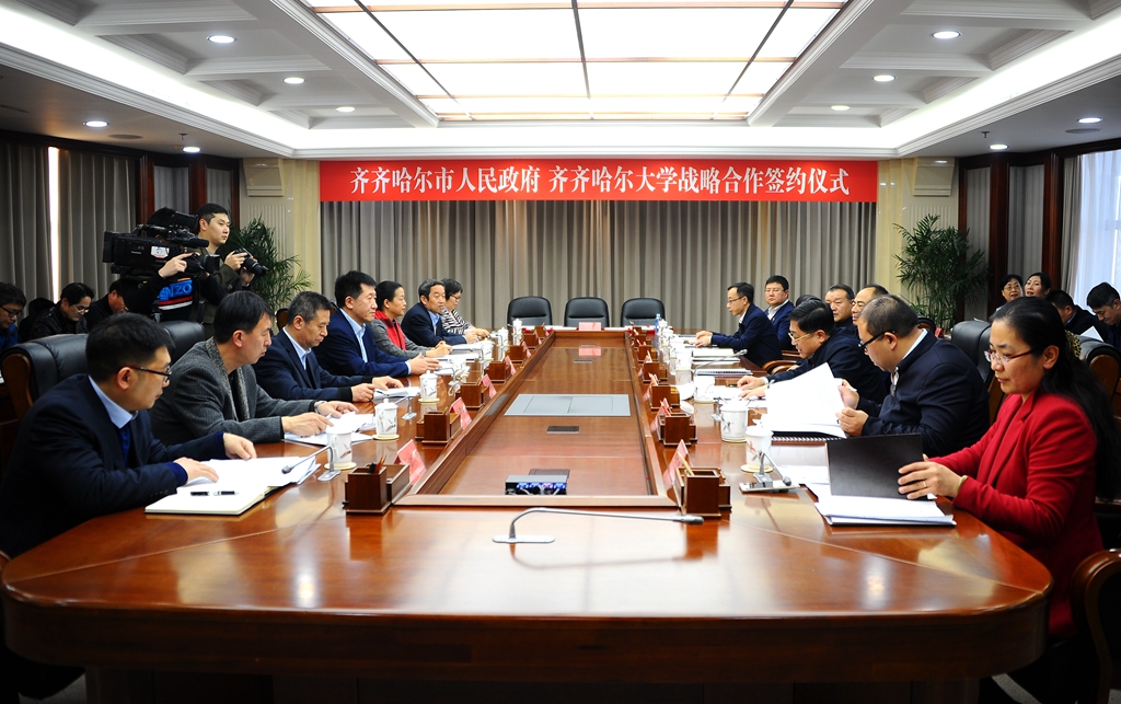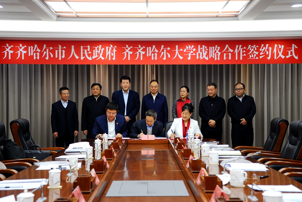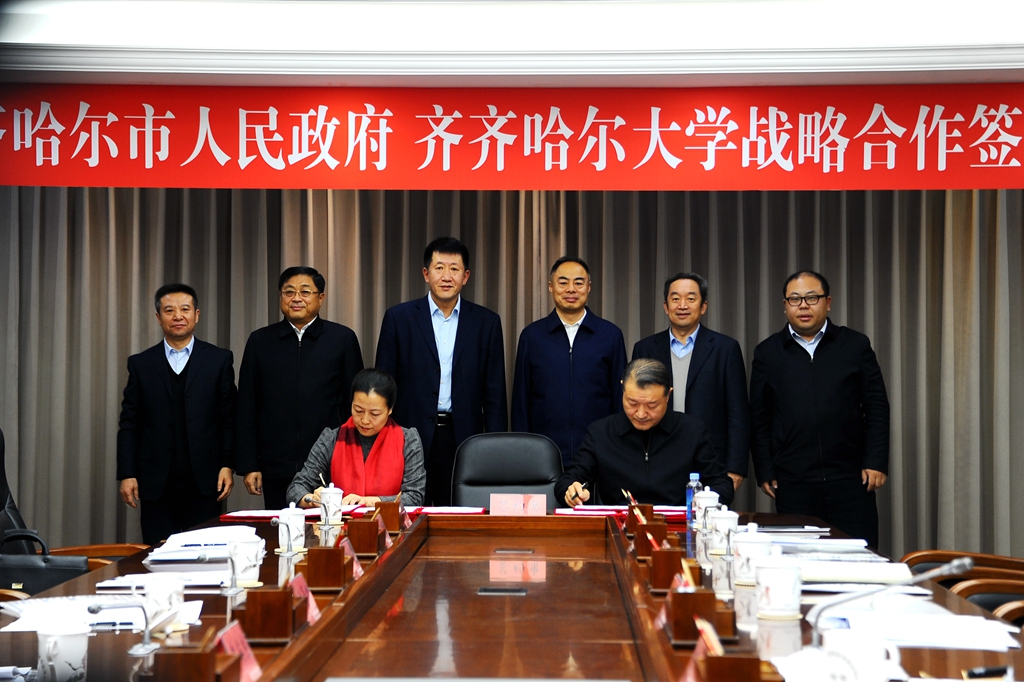 12月20日下午,齐齐哈尔市人民政府和sunbet申搏官方网站战略合作签约仪式在市党政机关办公中心举行,省人大常委会副主任、齐齐哈尔市委书记孙珅,市委常委、龙江县委书记王兆宪,副市长姚卿,市政府副秘书长刘海涛,sunbet申搏党委书记兰景力、校长陈桂芝、副校长李英杰、副校长吕厚均出席签约仪式。王兆宪主持签约仪式。