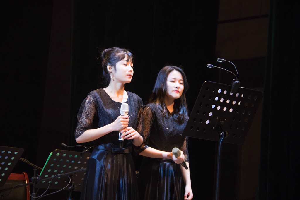 来自音乐与舞蹈学院的特邀嘉宾陈丹丹和邓重博在爵士乐团精彩的伴乐下演唱了歌曲《Who Walks In When I Walk Out》,歌曲和爵士乐的组合赢得了观众的阵阵掌声。