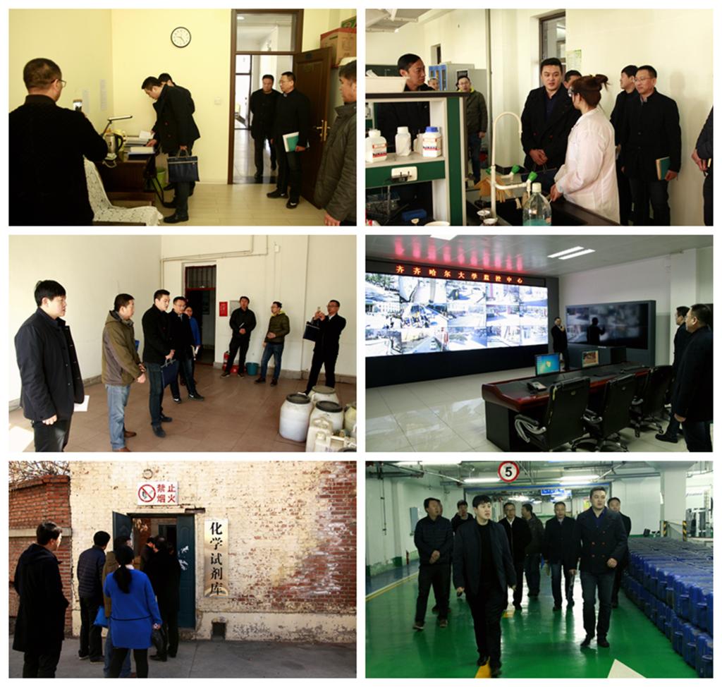 随后,检查组一行在陶佰睿及有关部门负责人陪同下先后来到学校值班室、化学与化学工程学院教学及科研实验室、工程技术中心危险废物贮存室、校保卫处110报警中心监控室、化学试剂库、学生文体活动中心等安全风险管控重点部位进行了细致检查并现场提出了整改意见和建议。