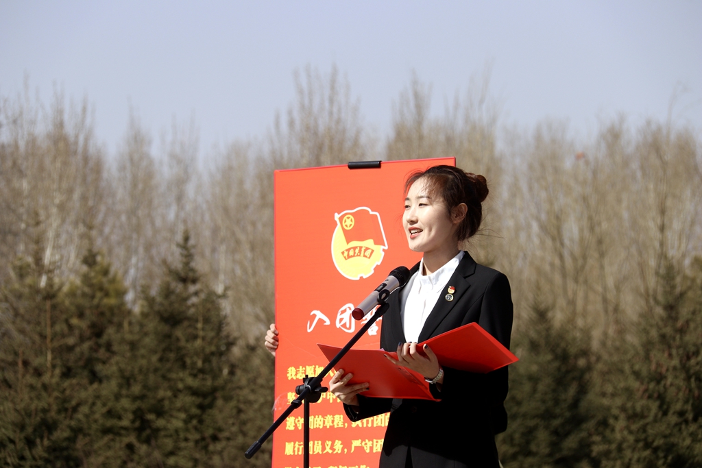 全体团员在校学生会副主席张赛同学的带领下,重温了入团誓词。