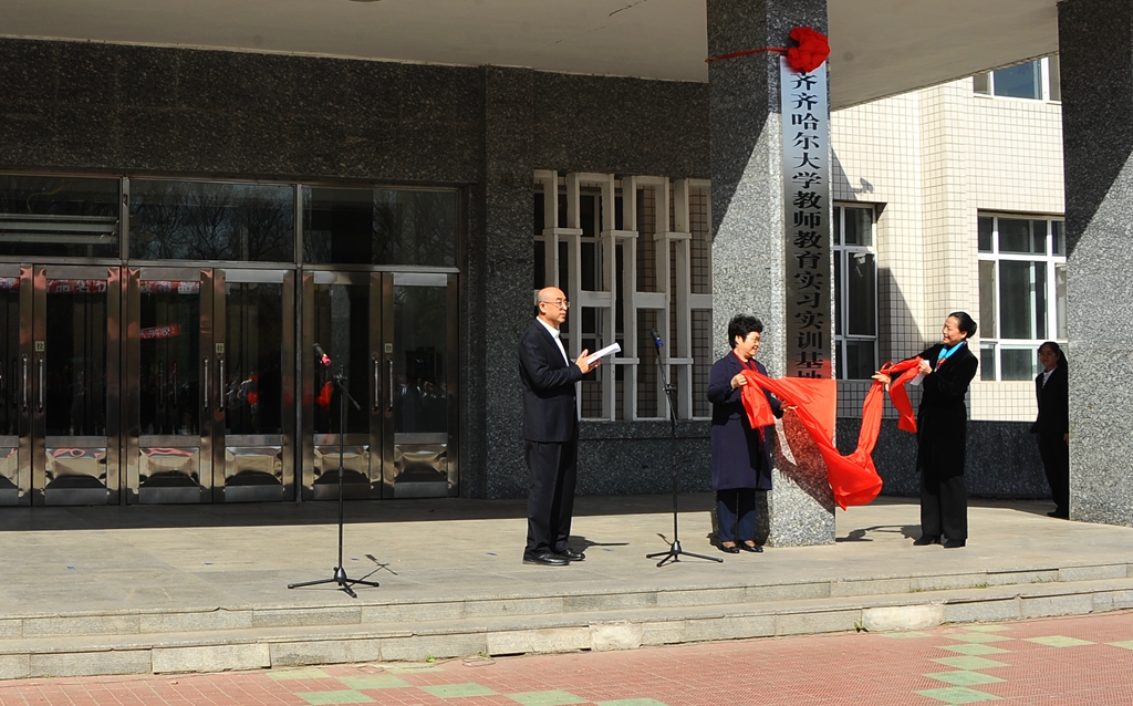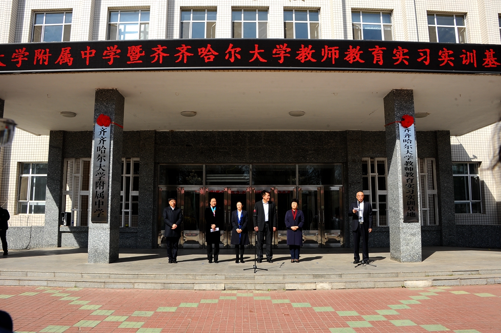4月16日上午,sunbet申搏官方网站附属中学暨sunbet申搏官方网站教师教育实习实训基地举行揭牌仪式,齐齐哈尔市委常委、宣传部长何晶,副市长刘艳芳,市教育局长刘凤德,sunbet申搏党委书记兰景力、校长陈桂芝、校党委副书记齐宏伟、副校长李英杰、工会主席陶佰睿出席仪式。