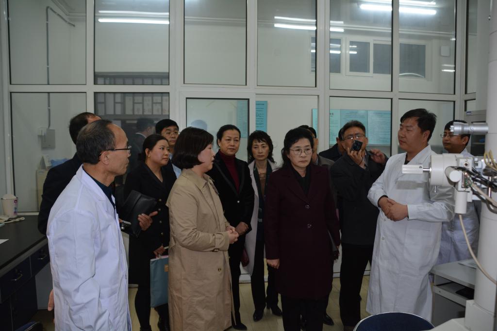 校党委书记兰景力、校长陈桂芝代表学校对边奎顺校长率领的朝鲜金亨稷师范大学代表团来访表示热烈的欢迎,并带领他们先后来到食品与生物工程学院、校史馆、分析测试中心、校园视频监控中心、化学与化学工程学院科研实验室等地,对sunbet申搏的历史沿革、办学理念、师资配备、科研成果转化等方面情况进行了实地参观考察。