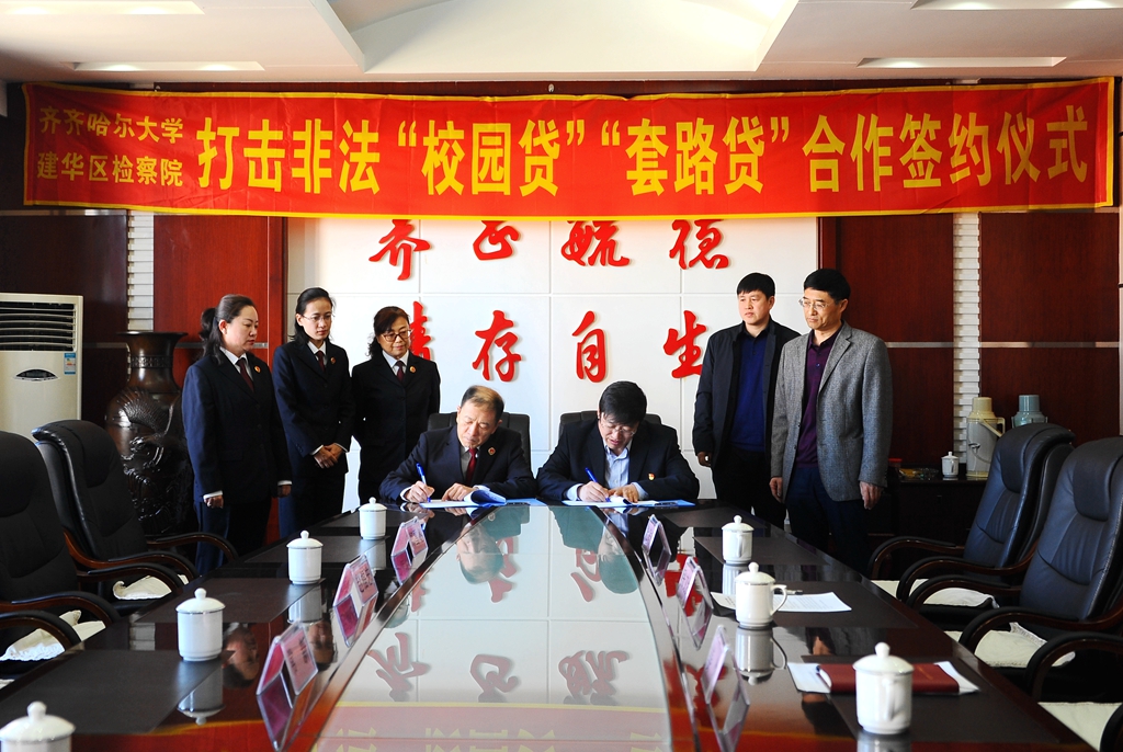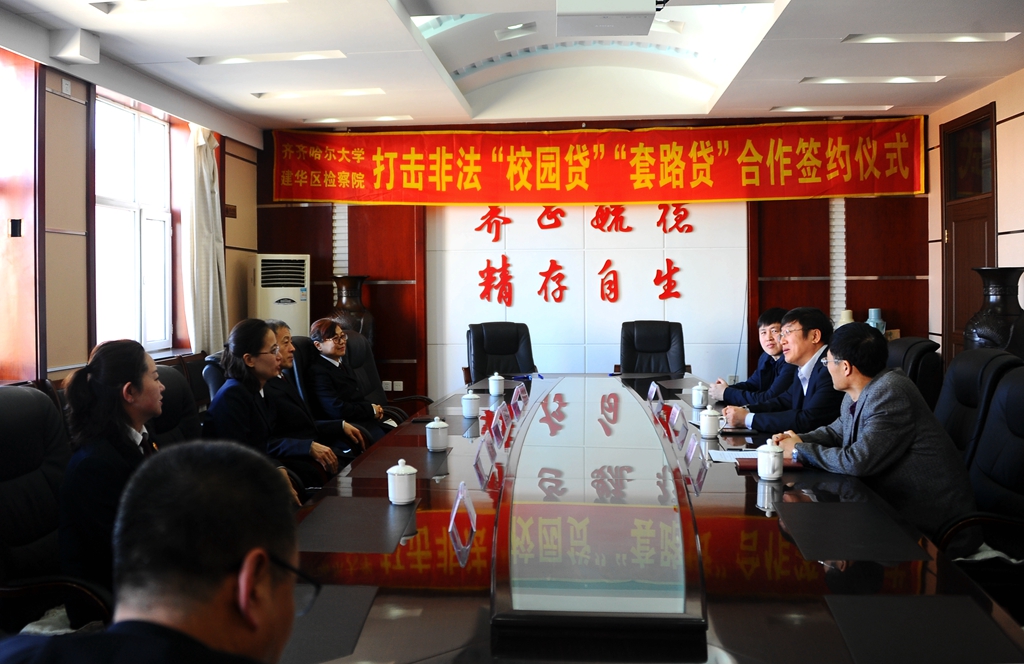 为保护在校学生依法使用助学贷款,严厉打击非法“校园贷”“套路贷”等违规行为,保障学生合法权益不受损害,4月25日上午,sunbet申搏与建华区人民检察院合作签约仪式在办公楼504会议室举行,建华区人民检察院党组书记、检察长赵福忠,齐齐哈尔市人民检察院民事检察部部长常新,建华区人民检察院副检察长郑雪冬,sunbet申搏党委副书记张文治、学生工作部(学生处)部(处)长姜波、武装部(保卫处)部(处)长杜海权等出席签约仪式并进行了座谈。张文治主持签约仪式。