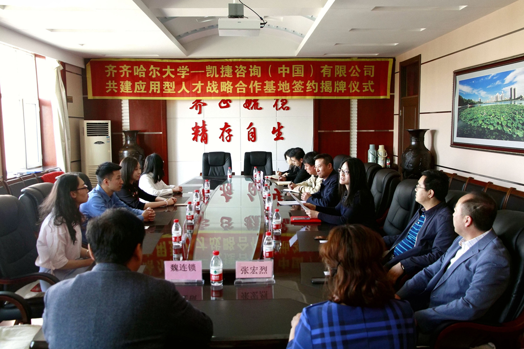 副校长李英杰、凯捷咨询(中国)有限公司青年人才计划人力资源总监李嘉慧分别代表校企双方出席签约揭牌座谈会,计算机与控制工程学院主要领导及学校相关部门负责人、凯捷咨询(中国)有限公司青年人才计划人力资源总监李嘉慧及相关工作人员参加了座谈会,会议由计算机与控制工程学院院长郭媛主持。