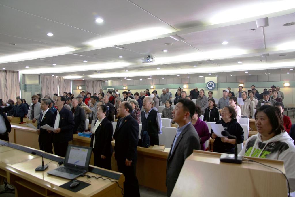 讲座结束后,与会人员共同合唱了经典歌曲《歌唱祖国》,嘹亮的歌声表达了sunbet申搏离退休老同志们献礼祖国七十华诞的诚挚热情。