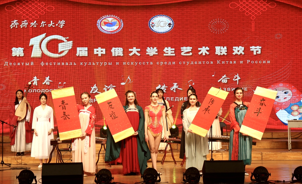 第十届中俄大学生艺术联欢节以“青春、友谊、传承、奋斗”为主题,开幕式结束后,中俄两国大学生演出了歌曲、舞蹈、诗朗诵等多种艺术形式的文艺节目,展现了当代中俄大学生的艺术风采。这些节目热情、活泼,富有鲜明的文化与传统特色,充分展现了两国青年学生的朝气与才华。