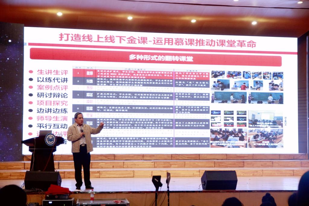 哈尔滨工业大学战德臣教授为会议作专家报告《规范建设慕课,推动课堂革命》,他通过“MOOC +SPOCs +翻转课堂”教学改革方面的实践成果,系统地解析了一流课程双万计划的精神和实质;哈尔滨工业大学裴秋宇副教授为会议作专家报告《问题逻辑还是选择成本?——解读新精品MOOC的黄金法则》;向日葵教育科技有限公司李广胜副总经理为会议作专家报告《线上“金课”的表达》。