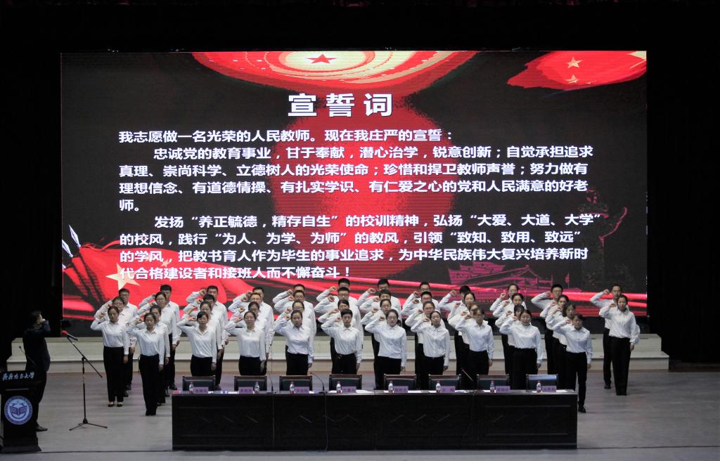 陶佰睿代表学校向顺利完成为期一年培训的青年教师表示祝贺!他指出,青年教师是学校发展的重要力量,青年教师的专业素养和工作能力直接决定着学校教育教学工作的质量,学校高度重视青年教师的培养,各职能部门积极搭建平台,助力青年教师成长。目前,学校正处于努力实现“十三五”发展规划的关键期,也是学校审核评估整改建设年,每一位教师教育教学能力和综合素质的发展,都与建设高水平大学息息相关。通过青年教师岗前(岗位)能力培训班的举办,充分提升了青年教师教育教学水平,调动了青年教师投身教学的积极性,展现了青年教师良好的精神风貌。希望大家要怀有强烈的危机感、紧迫感、使命感,解放思想,锐意进取,把握新时代高等教育发展的基本规律和学校应用型人才培养定位的新要求,积极探索教育教学改革,以献身、求真、创新的精神,共同完成新时代赋予我们的立德树人的根本任务,为学校内涵式发展和教育教学质量提高贡献力量!