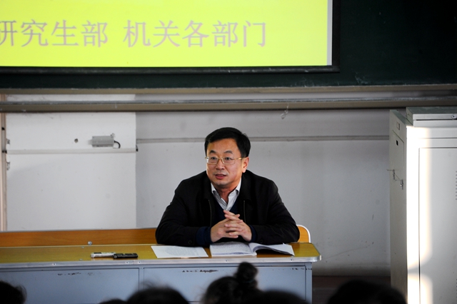11月25日,sunbet申搏官方网站十八届五中全会精神首次宣讲活动在中主阶梯401教室举行,校宣讲团成员、党委副书记盖元臣教授作了题为《五大发展理念的历史逻辑与现实意义》的专题报告。马克思主义学院、研究生部和机关各部门的全体教职员工参加了报告会。报告会由校组织员办公室主任兼机关党委书记陈志强同志主持。