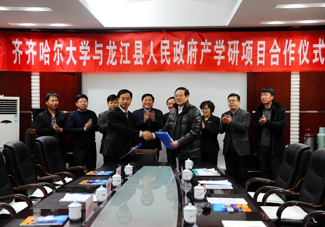龙江县委书记王兆宪在签约仪式上详细介绍了县域经济的有关情况,重点介绍了龙江县在特色农副产品、农产品精深加工以及相关科技创新方面所开展的工作。王兆宪希望大学和地方积极发挥各自的资源优势,进一步加强科研和科技成果转化方面的合作,提升合作的层次和水平,共同推动地方社会经济各项事业的深入发展,为振兴龙江经济做贡献。