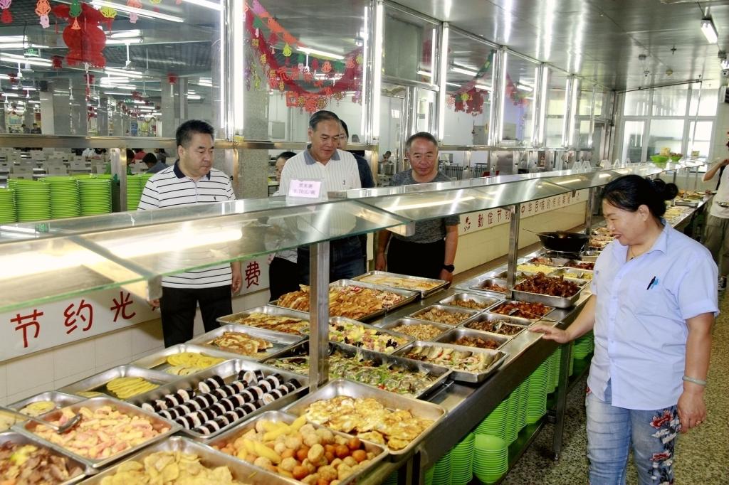 王刚首先慰问了伙食科员工,对他们为保证食堂提前开餐营业所付出的辛勤劳动表示感谢,对食堂在营造迎新氛围、保证饭菜质量及维持价格稳定等方面的工作给予了肯定。同时,王刚还详细询问了食堂各类食品原材料的定点采购、货物存储情况及加工制作的各个环节,重点查看了就餐环境、食品质量、花色品种以及价格公示情况。