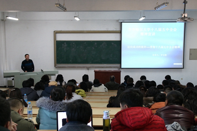专题宣讲活动引导学习。在校党委宣传部和各基层党委(直属党支部)的共同努力下,学校组织理论专家,认真遴选专题,成立了由校党委副书记盖元臣教授亲自挂帅的“十八届五中全会精神宣讲团”。宣讲团于11月25日至12月9日,在全校范围内集中开展了面向全校各单位、各部门,覆盖全校师生,共计13场大型专题宣讲活动。其中,校党委副书记、教授、硕士生导师盖元臣主讲了《五大发展理念的历史逻辑与现实意义》;科技处处长、教授、博士、硕士生导师郑永杰主讲了《创新发展理念 推动科技创新》;食品与生物工程学院党委书记、副教授杨淳主讲了《全面建成小康社会——实现中华民族伟大复兴的第一个百年梦想》;科技处副处长、教授、博士、硕士生导师伊全胜主讲了《贯彻十八届五中全会精神 推动sunbet申搏科技创新工作持续发展》;马克思主义学院副院长、教授、硕士生导师于春梅主讲了《在扩大对外开放中寻求合作共赢》;马克思主义学院中国近现代史基本问题教研部主任、副教授、博士、硕士生导师吴庆华主讲了《凝聚发展共识 实现科学发展》。