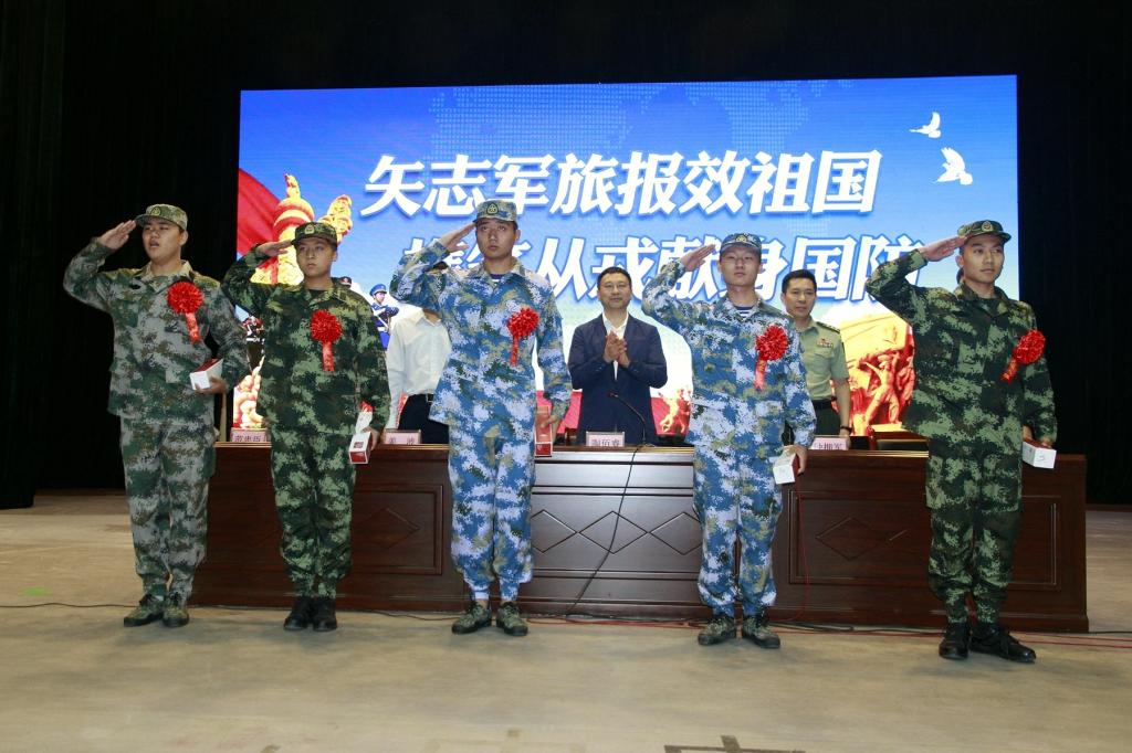 欢送会开始前,2019年度应征入伍的56名新兵集体合唱了《强军战歌》,他们用嘹亮的歌声表达了矢志军旅、报效祖国、携笔从戎、献身国防的决心。随后,2019年度新兵入伍欢送会在悠扬的国歌声中拉开帷幕。
