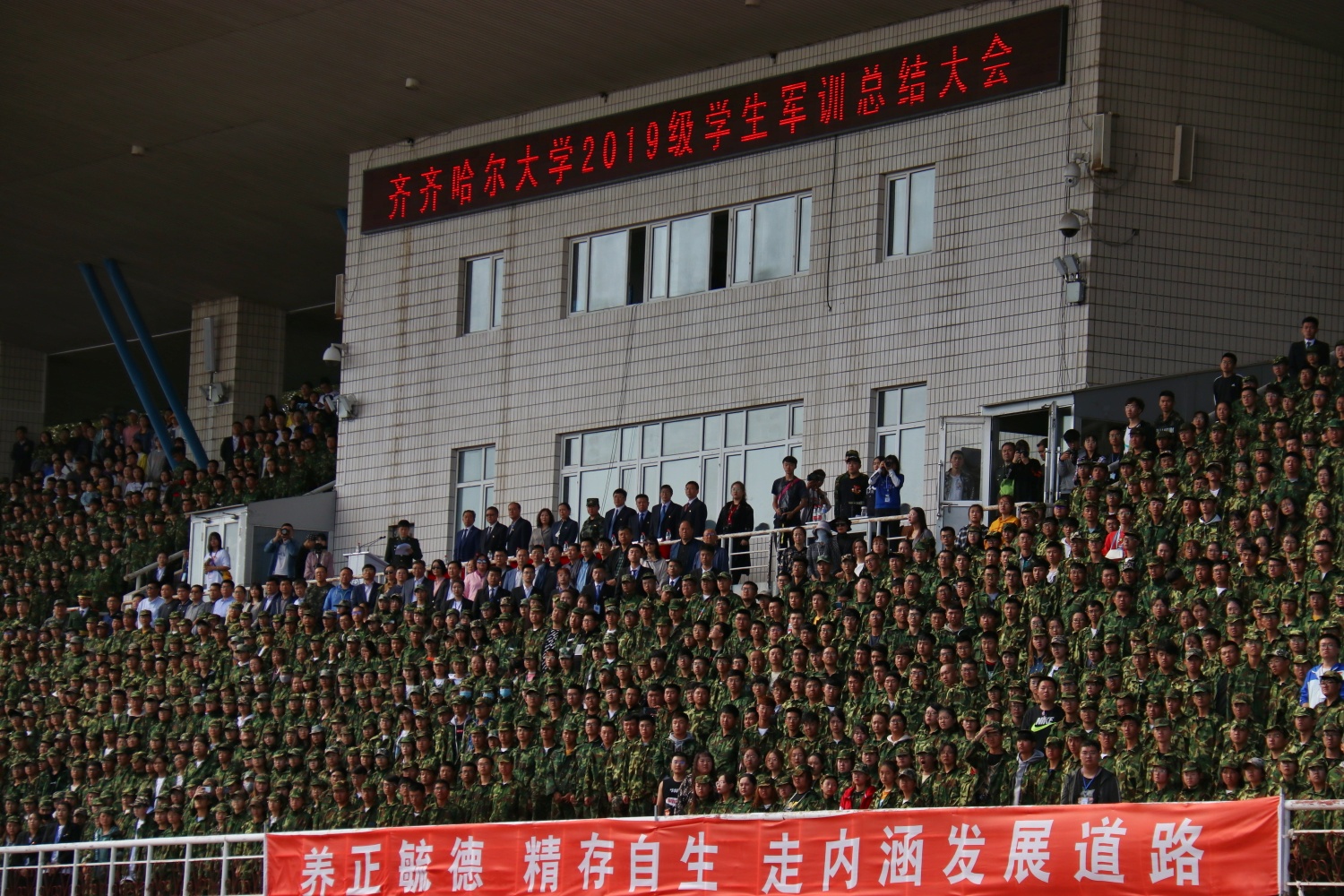 校领导陈桂芝、齐宏伟、张文治、王刚、李英杰、姜国庆、张树军、吕厚均、陶佰睿,武警齐齐哈尔支队政治部副主任张金龙共同出席大会,各学院党委书记、军训团各营营长、教导员及全体2019级参训新生参加了大会。大会由武装部(保卫处)部(处)长、军训团参谋长杜海权主持。