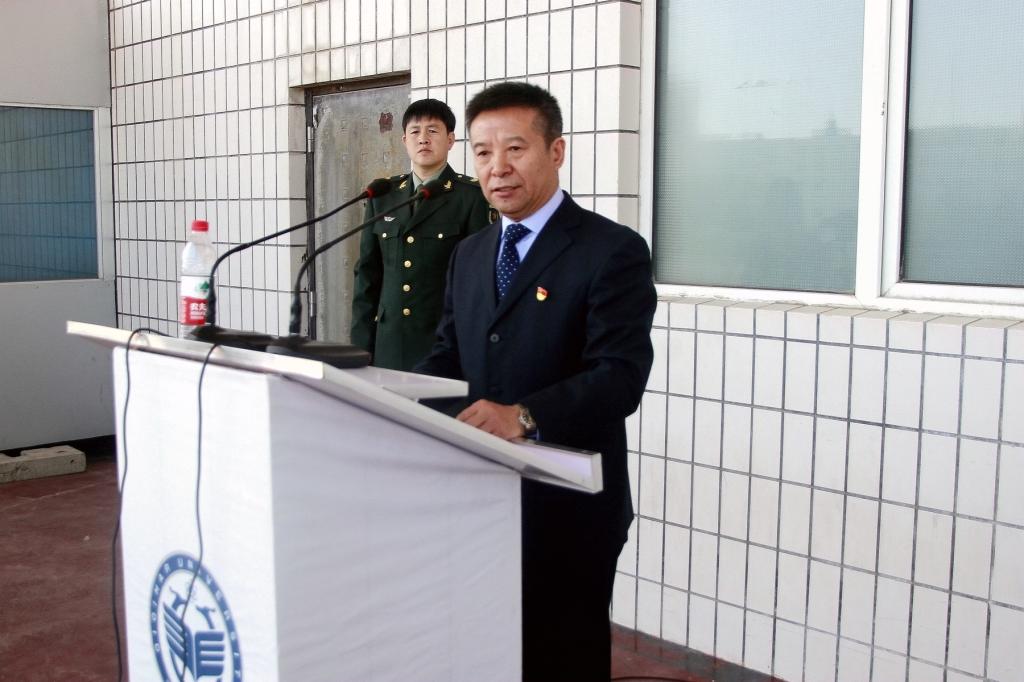陈桂芝校长代表学校为承训部队——武警齐齐哈尔支队赠送锦旗,感谢部队全体军训教官的专业指导和艰辛付出,武警齐齐哈尔支队政治部副主任张金龙代表承训部队接受锦旗。
