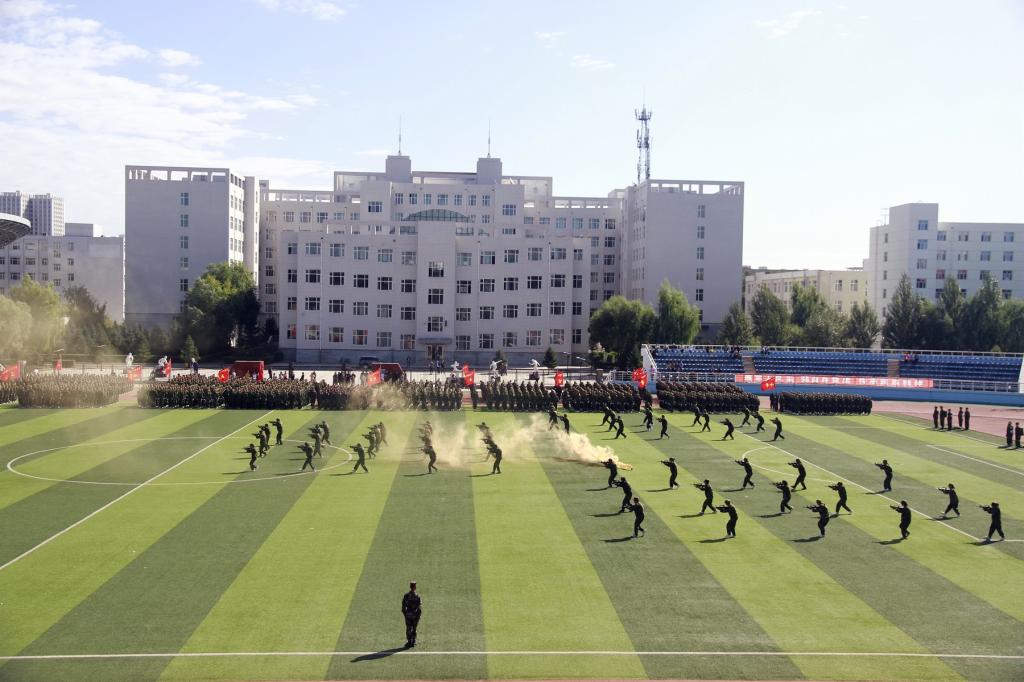 军训总结大会结束后,与会校领导及军训团司、政、后领导成员与武警齐齐哈尔支队官兵合影留念。