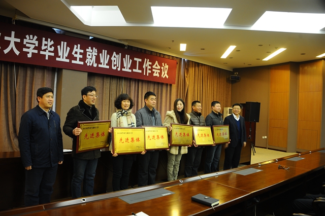 会上,学校就业指导处处长杨国志宣读了《2015届毕业生就业工作先进集体、先进个人表彰奖励名单》。出席会议的校领导为获奖集体和个人颁发了奖牌和证书。