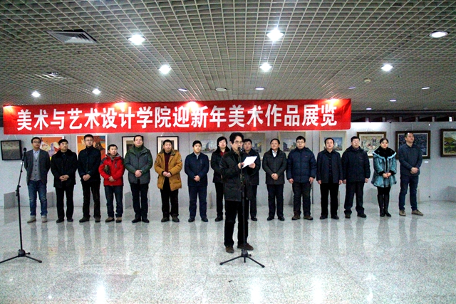 “美术与艺术设计学院迎新年美术作品展览”由美术与艺术设计学院副院长范铁明教授主持。开幕仪式后,领导、嘉宾与师生观看展览并合影留念。