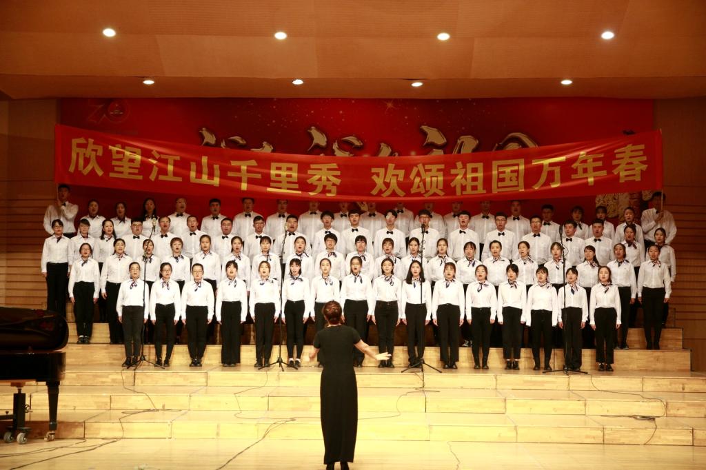 演唱中,男声激昂中不失温暖,女声温柔中饱含力量,参赛师生用声音讲述新中国的故事,诉说对新中国美好未来的期望。《不忘初心》《我和我的祖国》《走向复兴》《我们走在大路上》《没有共产党就没有新中国》《歌唱祖国》等一首首经典的旋律,承载的是满腔的激情,展现的是齐大人奋发向上的精神风貌,表达的是对祖国深沉的爱。