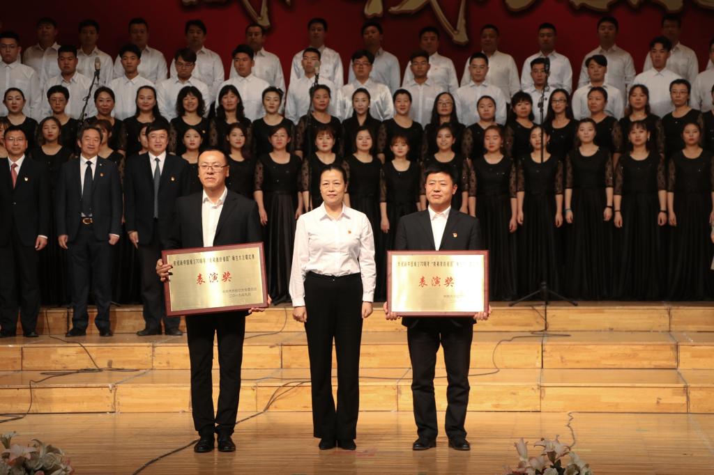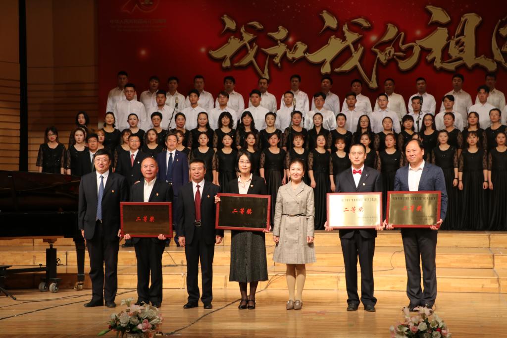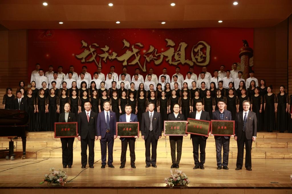 放歌新时代,筑梦新征程。在新中国70华诞即将来临之际,为营造团结奋进、热烈喜庆的氛围,将学校“不忘初心、牢记使命”主题教育与庆祝新中国成立70周年系列活动结合起来。9月25日,sunbet申搏在音乐厅隆重举行了庆祝新中国成立70周年“我和我的祖国”师生大合唱比赛。校领导陈桂芝、齐宏伟、张文治、王刚、李英杰、姜国庆、张树军、吕厚均、陶佰睿,党委常委、宣传统战部长王晓梅,党委常委、组织部长马文辉出席活动并为获奖单位颁奖。