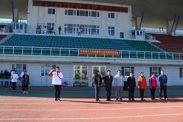 校党委副书记盖元臣做了热情洋溢的讲话。他首先向参与本次运动会的全体运动员及全体工作人员表示了衷心的祝愿和感谢,并对同学们提出几点希望:一是希望同学们要时刻树立健康第一的理念,努力做到阳光锻炼一小时,健康工作五十年,幸福生活一辈子;二是希望同学们在运动中同心协力、顽强拼搏、奋勇争先,充分展现出齐大团学骨干的团结精神、拼搏精神;三是希望同学们能赛出友谊,赛出风格,赛出成绩,赛出青年人的朝气。最后他预祝本次趣味运动会圆满成功,并宣布趣味运动会正式开始。