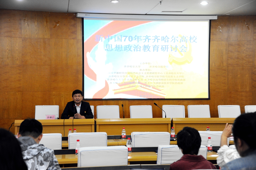 齐齐哈尔医学院马克思主义学院院长乔增正对本次研讨会进行了总结,他指出,本次高校思想政治教育研讨会获得了圆满成功,取得了丰硕成果,不仅推动了齐齐哈尔地区6所高校的思想政治理论课专家学者就共同关注的新时代思想政治理论课的改革创新问题展开深入讨论,而且加强了齐齐哈尔地区6所高校的思想政治理论课教师群体间的联系,希望大家以后有更多这样的机会进一步沟通交流。