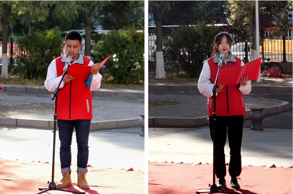 仪式上,青年志愿者代表许锐宣读了“护河志愿服务行动倡议书”,青年志愿者代表耿文静向全校师生发出了“垃圾分类我先行倡议”。