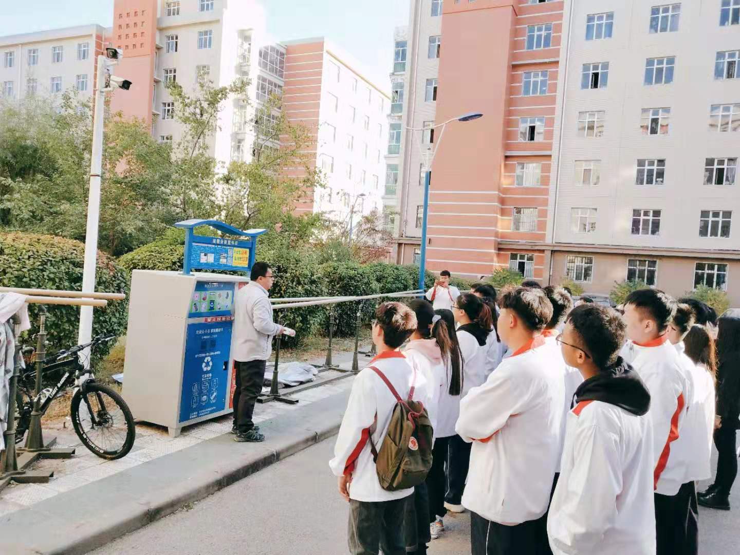 后勤管理处工作人员为现场同学介绍了sunbet申搏垃圾分类点布置及校园新型垃圾分类垃圾桶积分程序的应用。