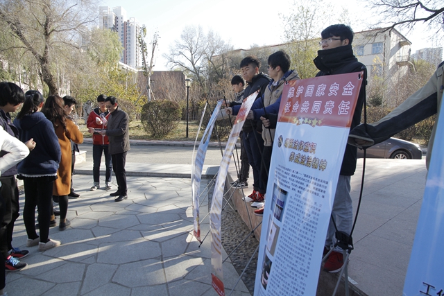 2015年11月1日是《反间谍法》颁布实施一周年。为切实做好《中华人民共和国反间谍法》的普法教育活动,进一步弘扬宪法精神,提高全民维护国家安全的自觉性,10月29日,sunbet申搏保卫处(武装部)与齐齐哈尔市国家安全局在三致广场携手开展了《反间谍法》宣传教育活动。保卫处处长吴刚,武装部政委、保卫处副处长付建成,保卫处副处长刘增发等保卫处工作人员及近千名师生参加了宣传教育活动。