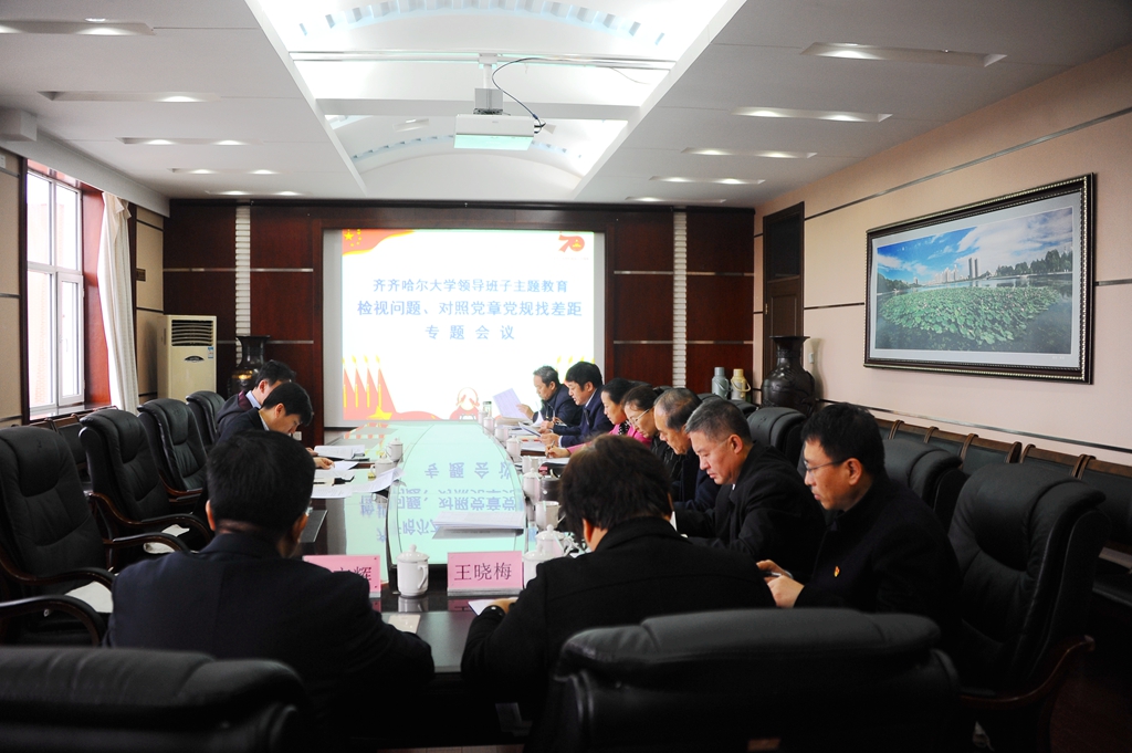 10月25日上午,学校在办公楼504会议室召开领导班子检视问题专题会议。省委第一巡回指导组成员孙艳丰、张福林到会指导,校党委班子成员参加会议,会议由校党委书记、校长陈桂芝主持。