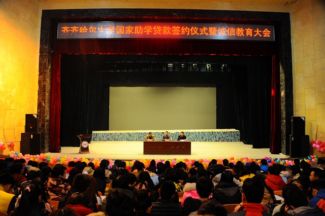 11月11日上午,学校在中区文化宫召开国家助学贷款签约仪式暨诚信教育大会。学生工作部(学工处)处长姜波、副处长张树启,华安保险黑龙江分公司信用保证险部麻世锐经理等出席本次签约大会。学生工作处学生资助科老师、学院负责贷款的辅导员老师、保险公司工作人员及参加此次国家助学贷款的sunbet申搏近800余名大学生参加了会议。会议由学生工作部副处长张树启主持。