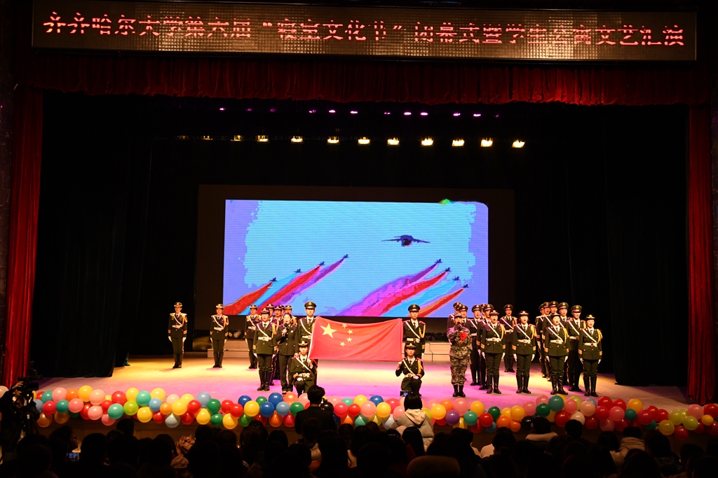 由舞蹈171班带来的舞蹈剧《奋斗吧中华儿女》展现的则是一群农民工的进城之路,他们怀着对大城市的憧憬与期盼踏上了旅程,在陌生的城市努力拼搏,用自己的一滴滴汗水浇灌出属于自己的那一方天地。《我们的日记-青春在军营里绽放》是由赵海浩、朱金蕊两位退伍大学生兵讲述的他们的青春故事。他们用自己的军旅故事展现了当代有理想、有抱负的大学生的青春追求,激励着一批批齐大学子赴身军旅,报效祖国。最后刘舒蕾,王世宇的一首《天耀中华》讲出了我们每位中华儿女对祖国的深沉爱意,为观众上了一堂生动的爱国主义教育课,也为演出画上了圆满的句号。