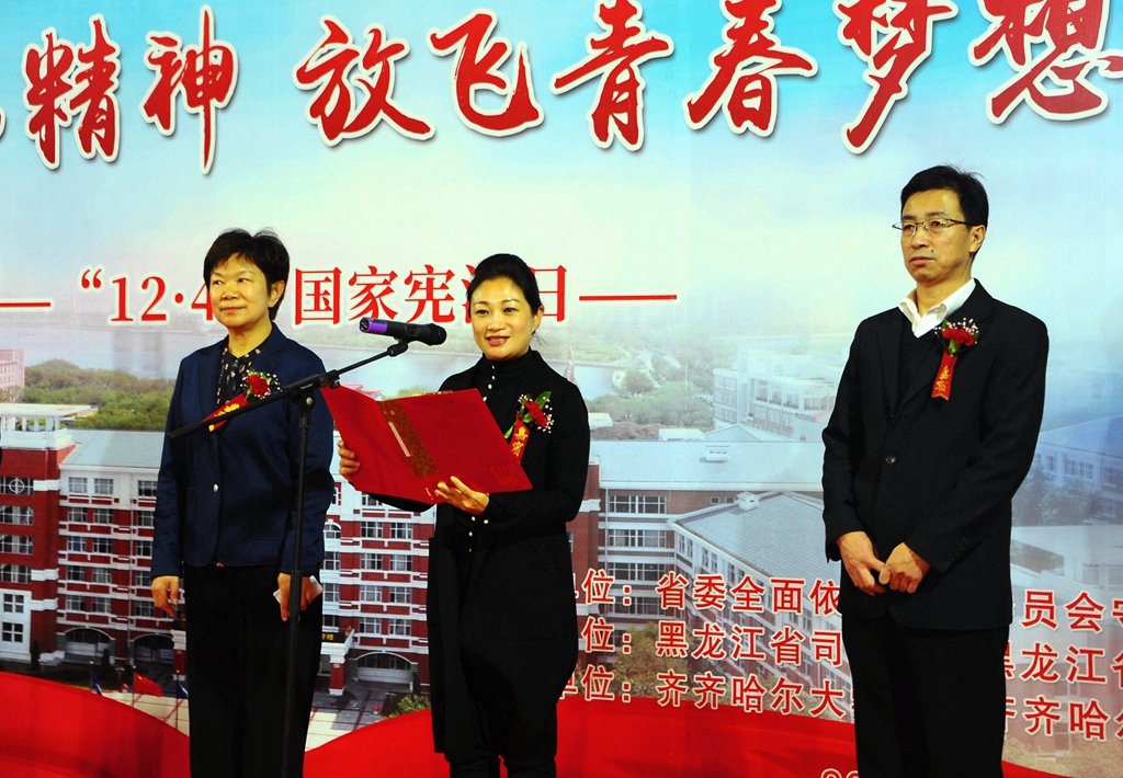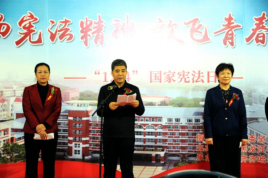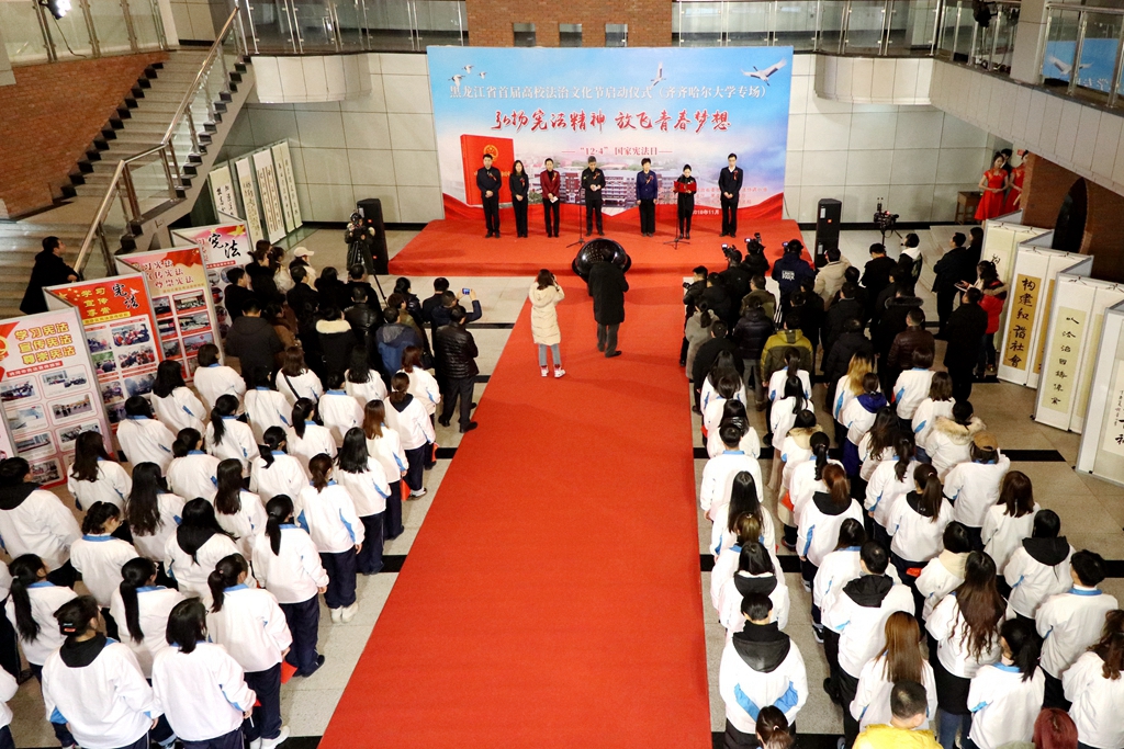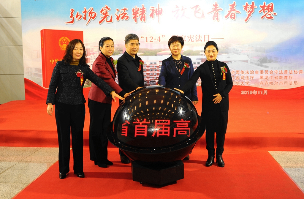 为深入贯彻党的十九大和十九届二中、三中、四中全会和省委十二届六次全会精神,深入开展“不忘初心、牢记使命”主题教育,贯彻落实党中央、省委关于开展好宪法学习宣传活动的决策部署,按照省委全面依法治省委员会守法普法协调小组的工作安排,在第六个国家宪法日和第二个“宪法宣传周”即将来临之际,11月27日下午,由省司法厅、省教育厅主办,sunbet申搏官方网站、齐齐哈尔市司法局承办的以“弘扬宪法精神 放飞青春梦想”为主题的黑龙江省首届高校法治文化节(sunbet申搏官方网站专场)在sunbet申搏音乐厅启动,标志着2019年全省“12•4”国家宪法日系列宣传教育活动大幕正式拉开。