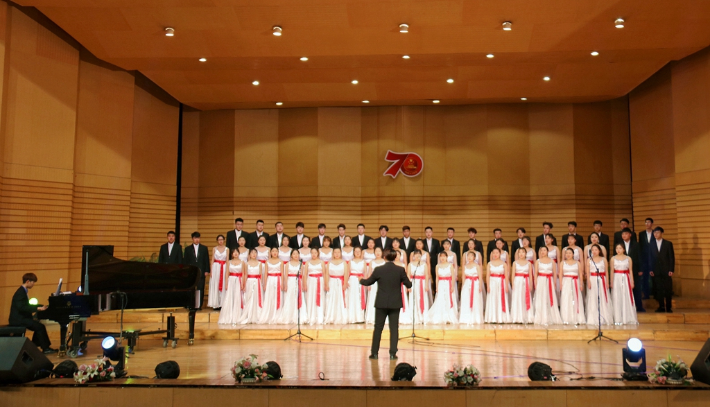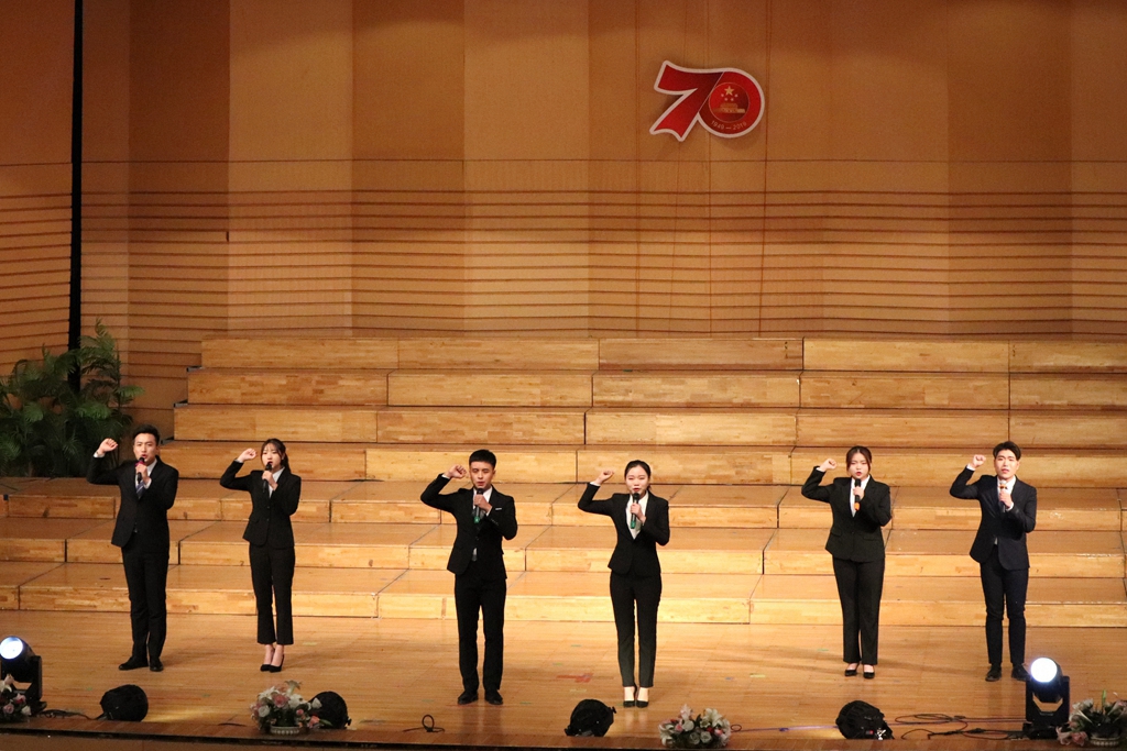 活动最终在全场人员手持国旗,齐唱歌曲《我和我的祖国》中结束。