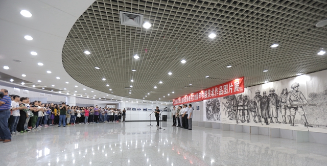 9月2日上午,纪念世界反法西斯战争胜利70周年中俄美术作品图片展在美术馆隆重开幕。